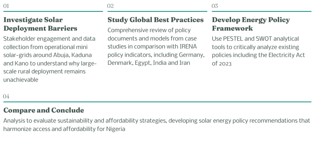 - Advocates policy-driven solar deployment to harmonise energy access, affordability, and sustainability in rural Nigeria.